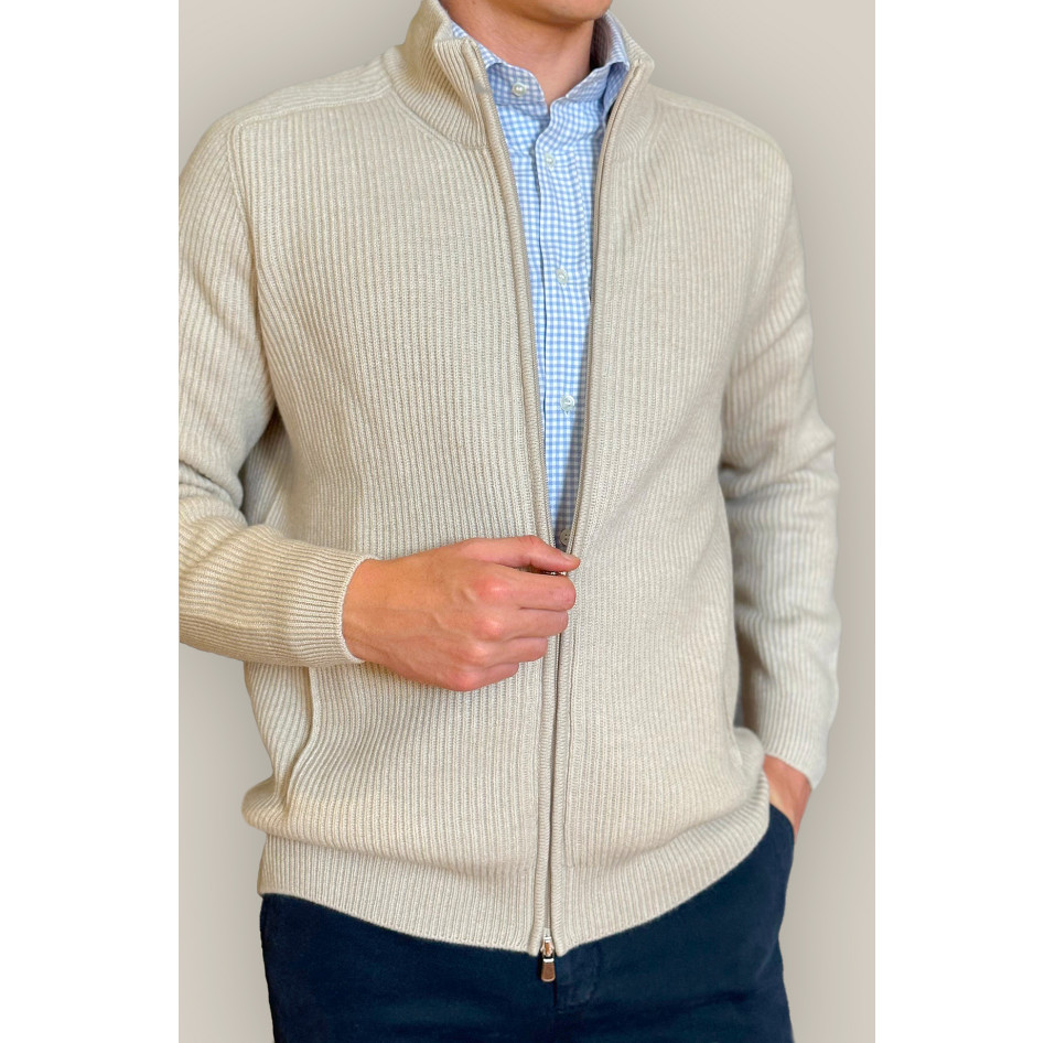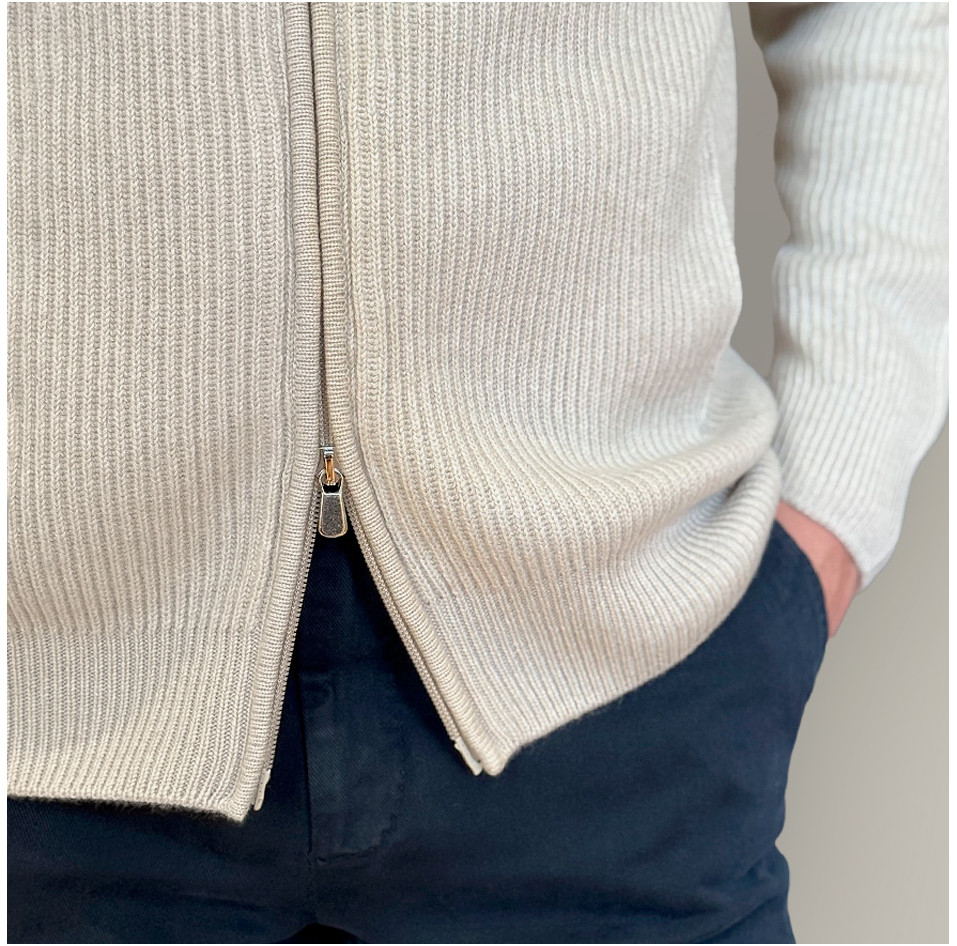 Cardigan 100% cashmere con cremallera y bolsillos.