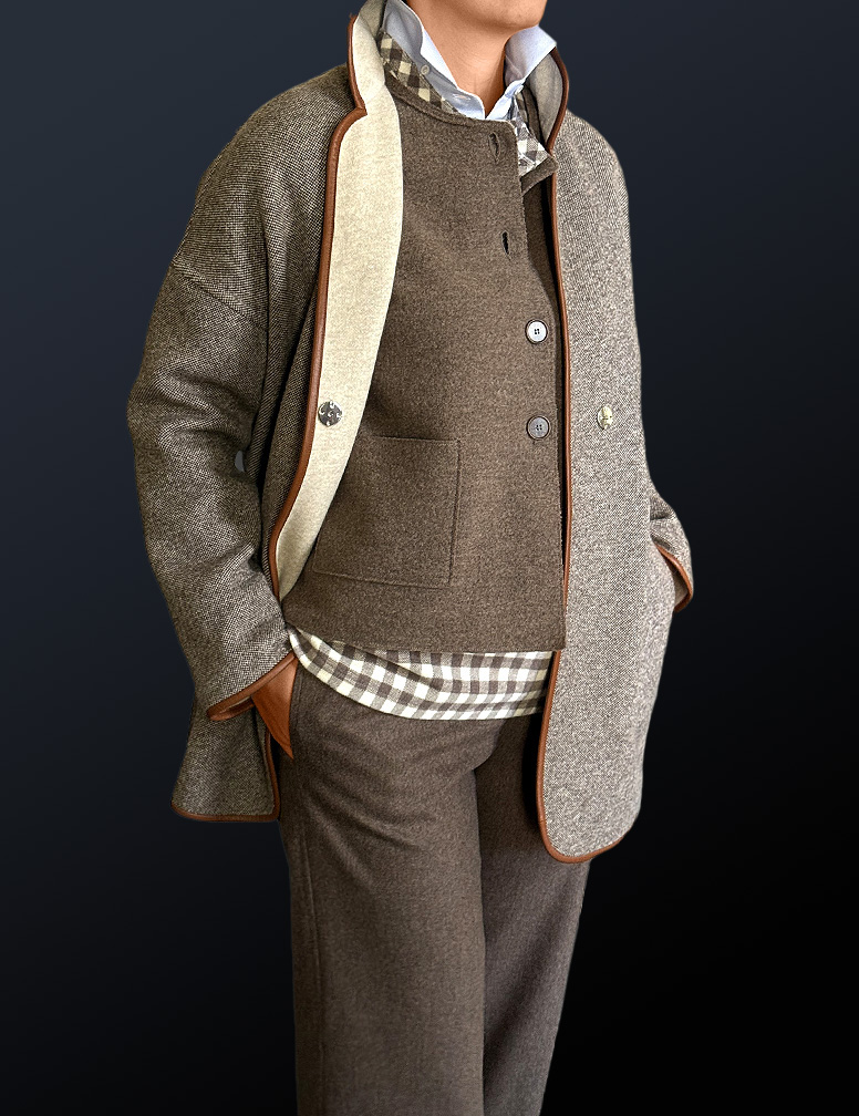 Chaqueta de lana y cashmere con chaleco desmontable.