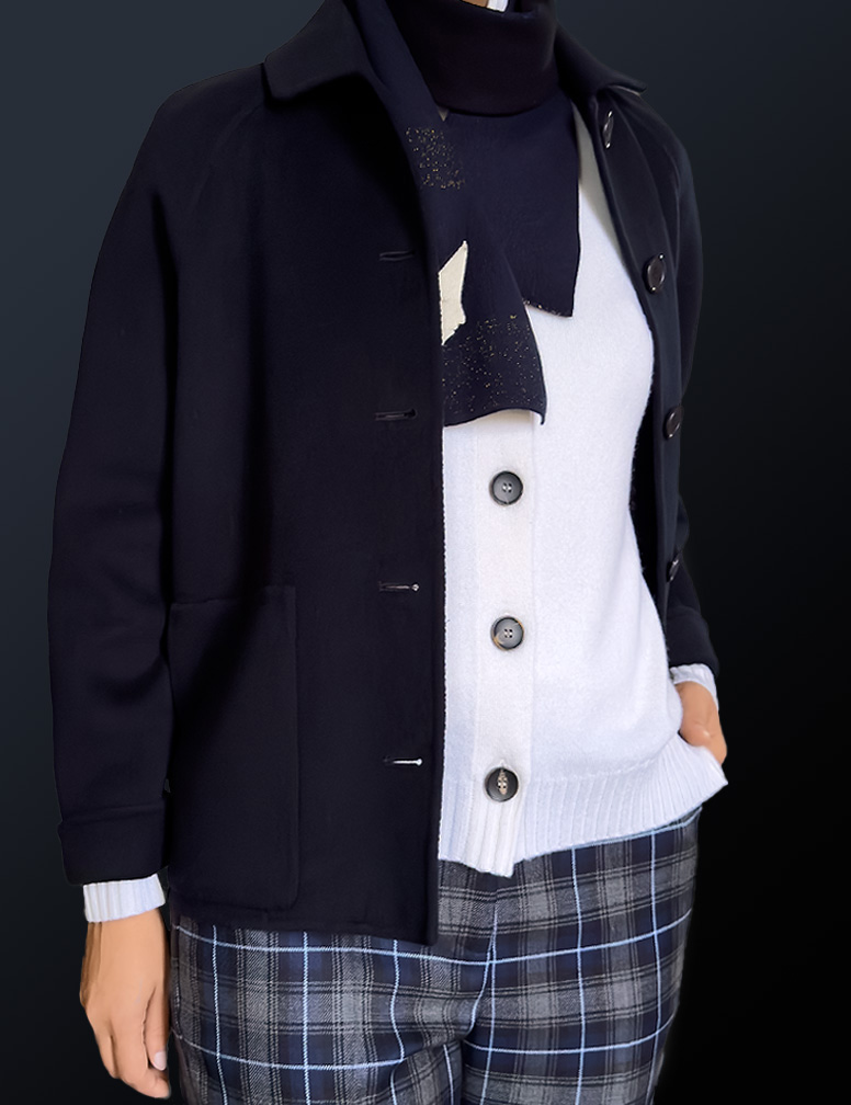 Chaqueta azul marino de cashmere y lana.
